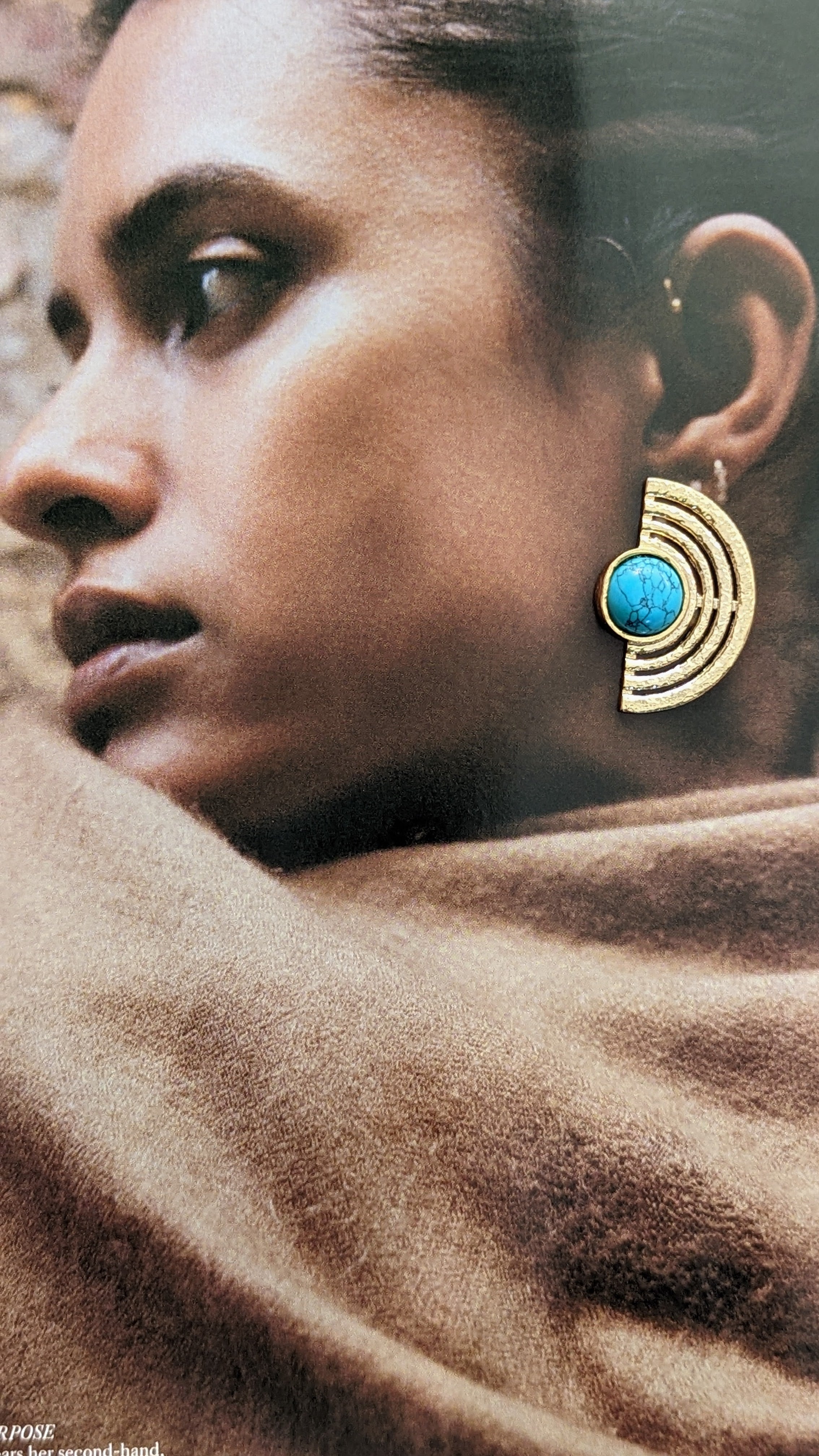 Add a touch of starlight to your outfit with these Blue Moon Studs. These studs feature a striking turquoise blue bead to bring a hint of glamor to your everyday look. Perfect for adding an elegant finishing touch to any day or night look, these blue moon studs from the Kreshya Egyptian Collection are perfect for giving your wardrobe a stylish update. With these studs, you can shine bright like the stars.