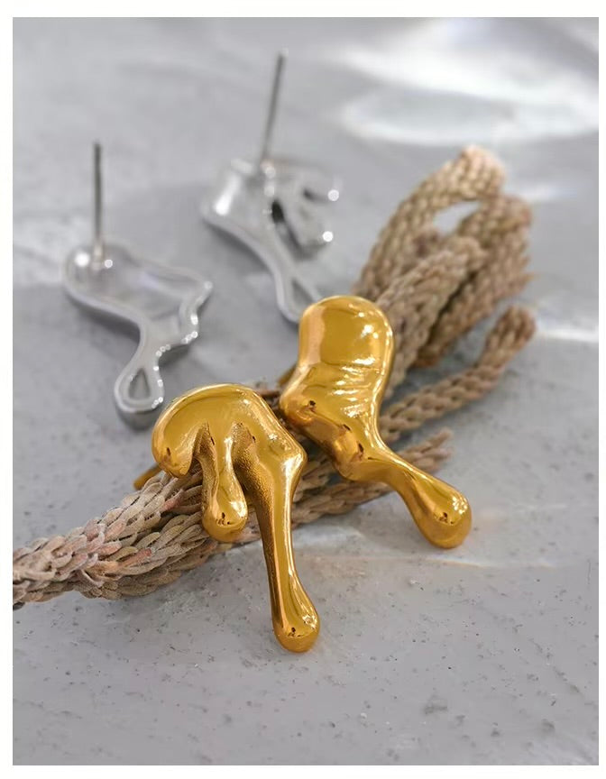 Step into effortless elegance with the Drip Mismatched Earrings — a contemporary design that plays with fluid form and artistic contrast. One earring flows in a sleek, minimalist curve, while its partner introduces bold movement, capturing the essence of molten metal mid-drip. Together, they strike a harmonious balance between subtle rebellion and sophisticated charm, making them a go-to for fashion-forward styling.