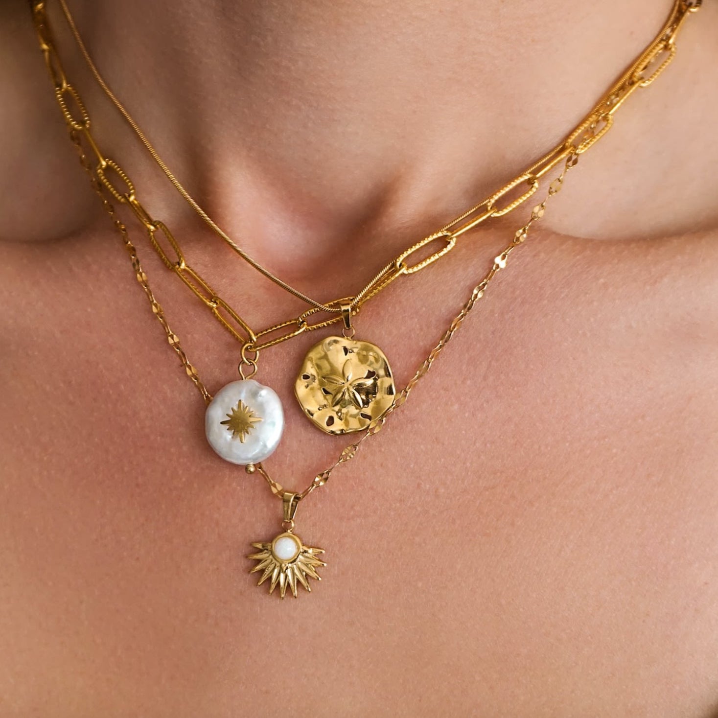 Discover elegance, affordability, and sustainability with Kreshya Jewellery's exquisite Necklace Collection. Our classic collection of necklaces is made from 927 silver, gold-coated through an eco-friendly process. Luxuriously encrusted with Swarovskis, pearls, and the finest semi-precious stones, these simple yet elegant designs are the perfect accessories to dazzle any occasion or elevate your daily wear. Waterproof and anti-tarnish, our necklaces are versatile enough to be worn for a swim or any sports activity.
