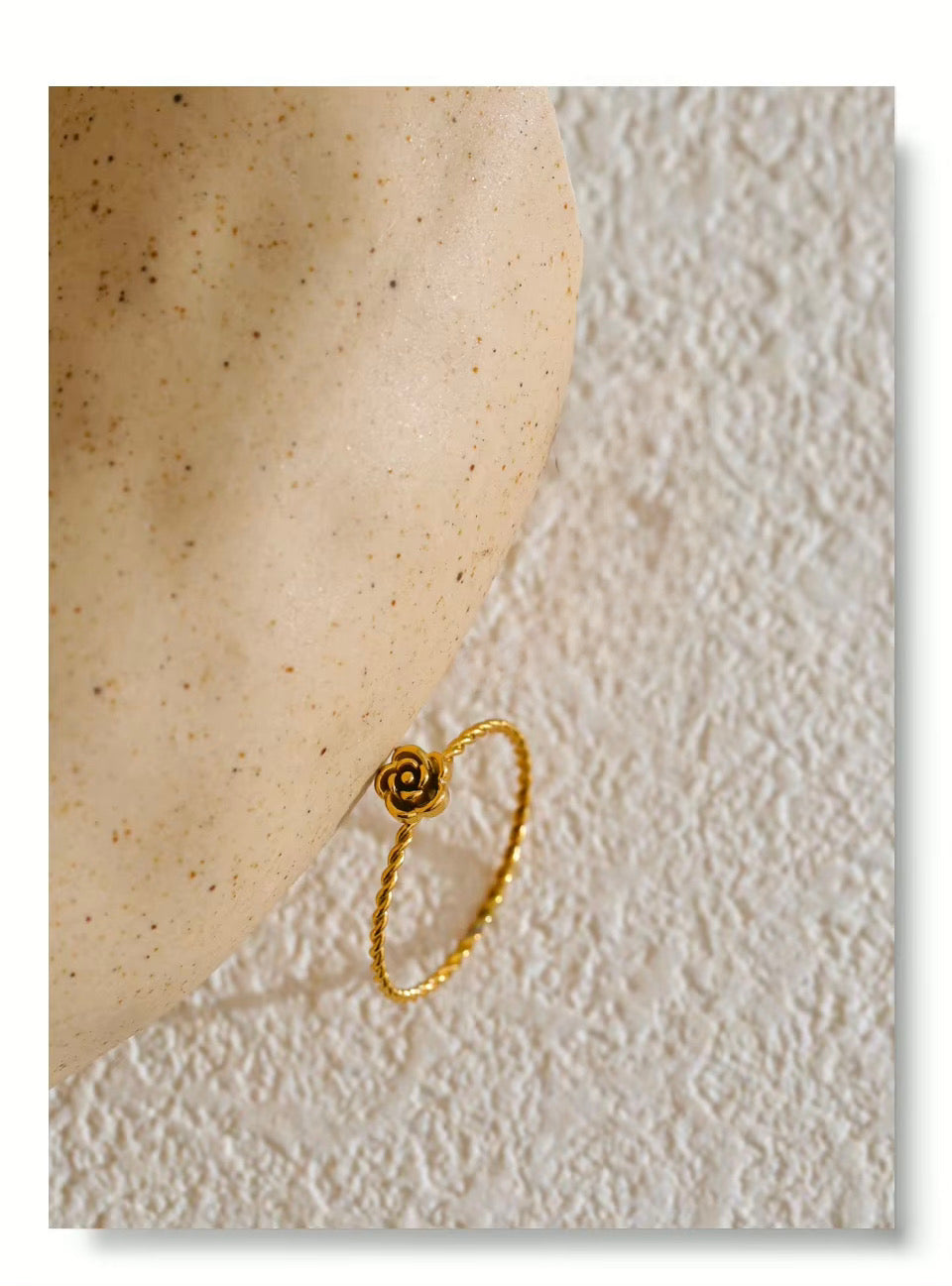 Romantic and timeless, the Floral Rose Ring captures the delicate beauty of a blooming rose frozen in its most graceful moment. At the center lies a finely sculpted rose—its petals soft in curve and rich in detail—set atop a slender, polished band that exudes femininity and charm. Whether worn alone or stacked, this piece brings a subtle floral flourish to your everyday elegance.