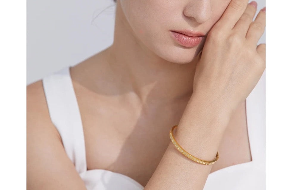 Elevate your everyday style with the Malax cuff from Kreshya. This free-size bracelet cuff is coated in 18K gold and studded with Swarovski crystals, creating a simple yet elegant look that's perfect for the office, a night out, or stacking with other bracelets. Crafted with a waterproof, tarnish-resistant design, this sustainable fashion accessory is both fashionable and functional, delivering a classic look that will never go out of style. Lightweight and comfortable, the Malax cuff is the perfect finishing touch to any outfit, adding a touch of elevated sophistication to your daily wear.
