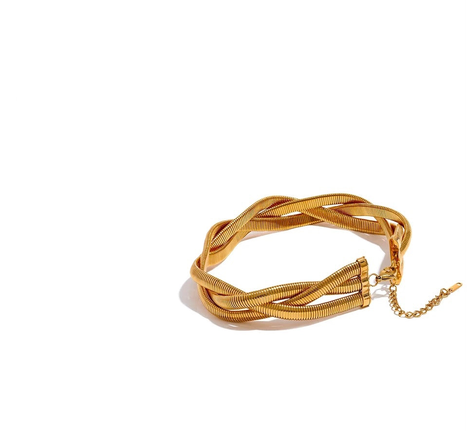 Introducing The Twisted Plait Gold Choker/Bracelet – your go-to accessory for a touch of quirky sophistication! Crafted from durable stainless steel, this versatile piece is designed to defy fashion norms, seamlessly transforming from a trendy choker to a bold statement bracelet.
