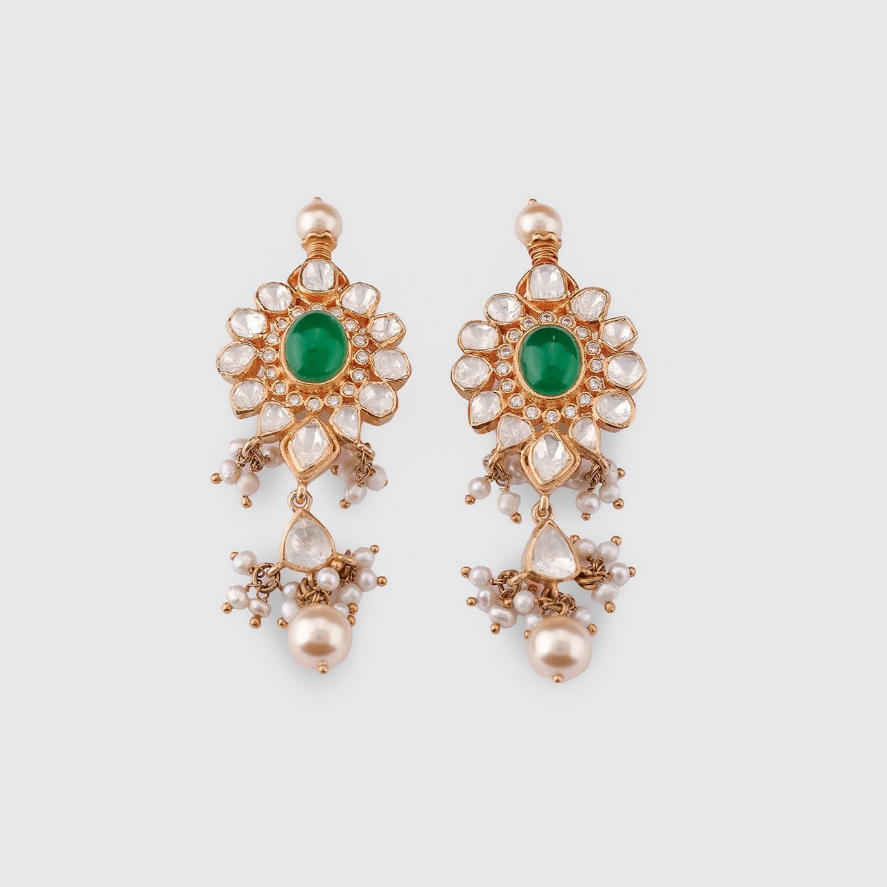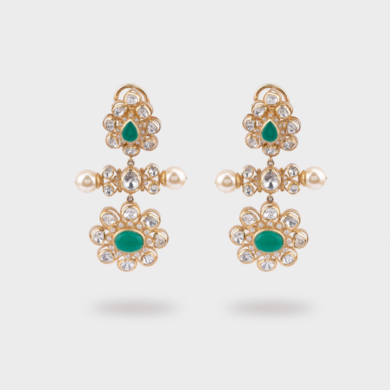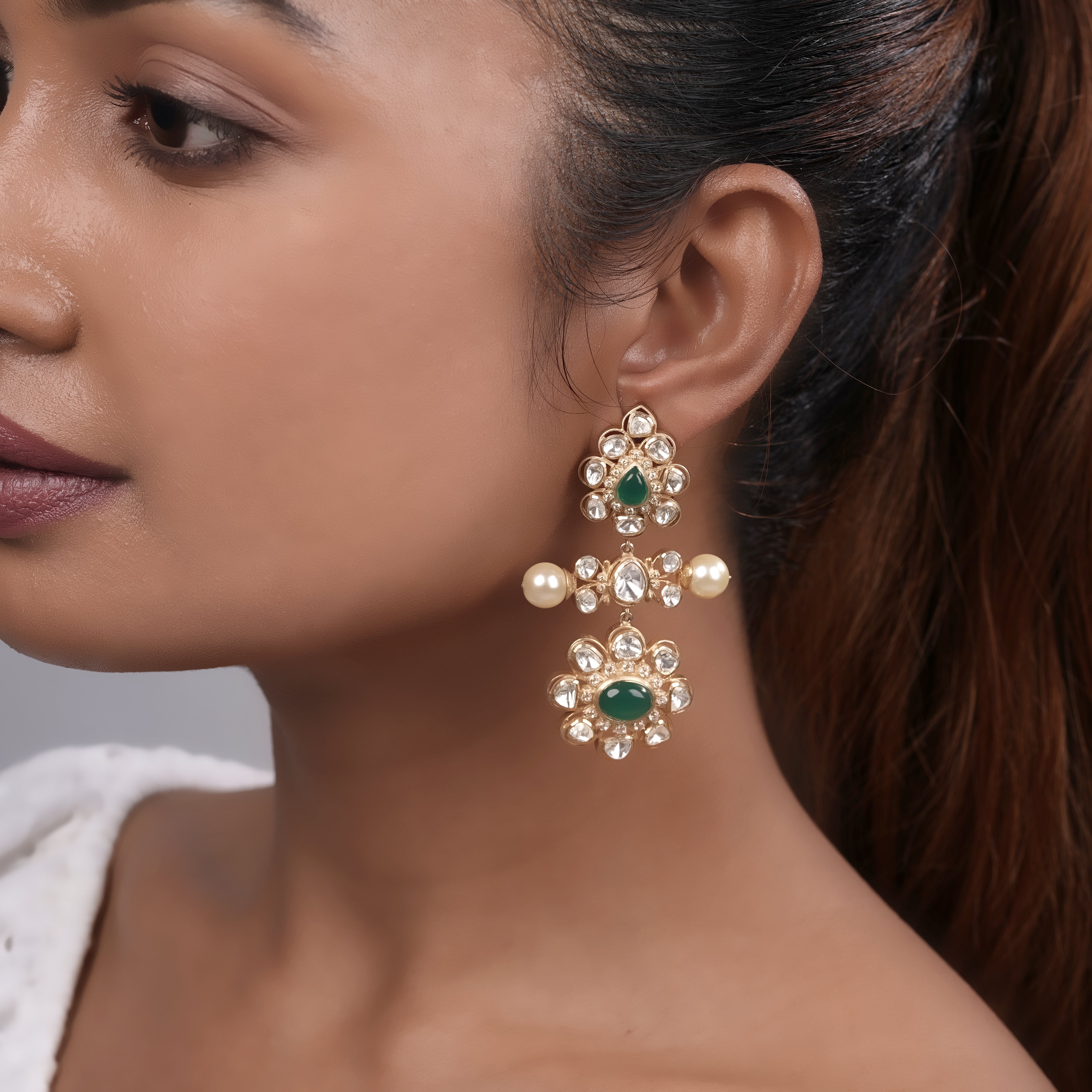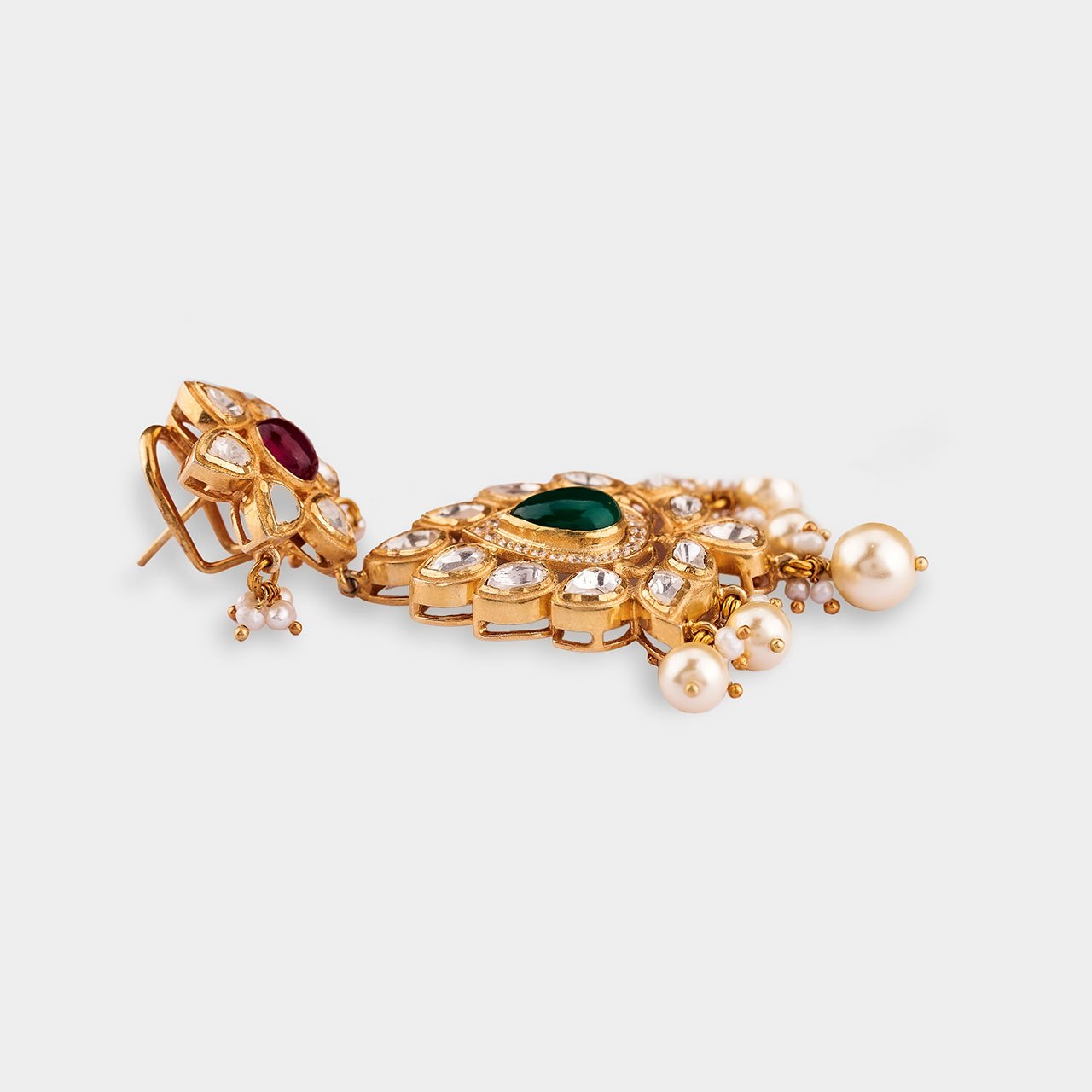 Discover Kreshya's exclusive Indian jewelry collection, crafted to embody regal elegance. Our Silver Polki collection showcases exquisite, diamond-cut pieces on a 925 silver foundation, radiating sophistication and charm. Each design exudes rustic allure, adorned with vibrant colored stones that elevate your ensemble with opulence. Explore our versatile range of multifaceted designs, perfect for pairing with any attire and making a statement wherever you go.