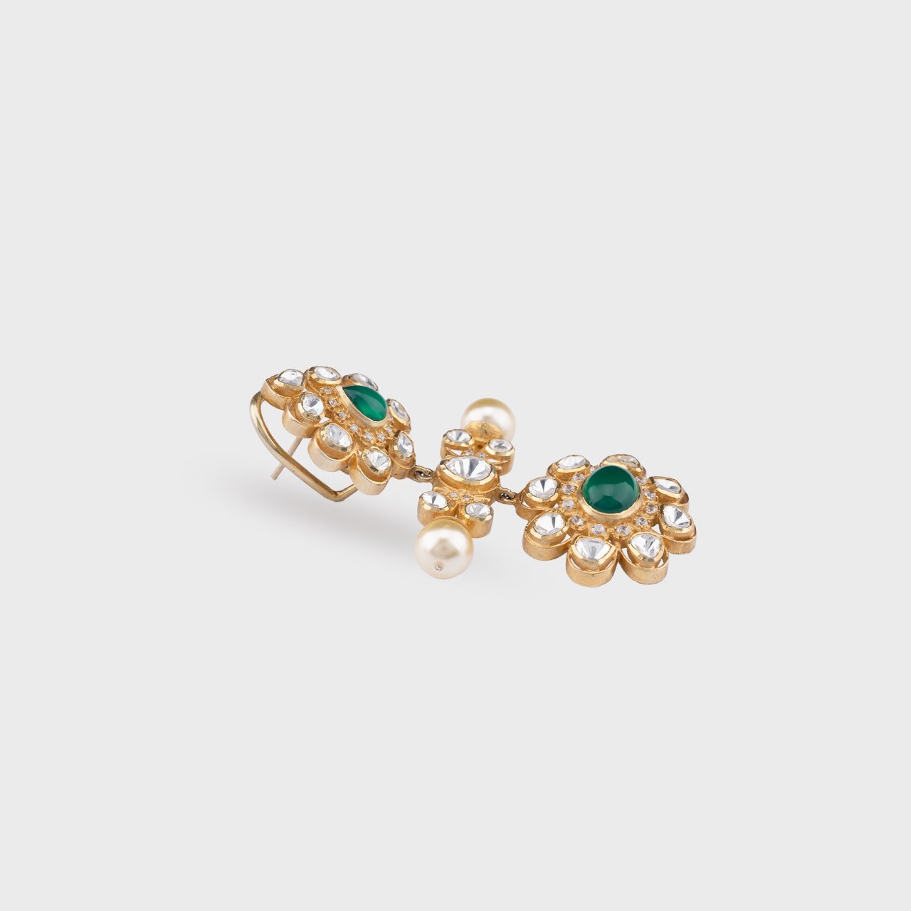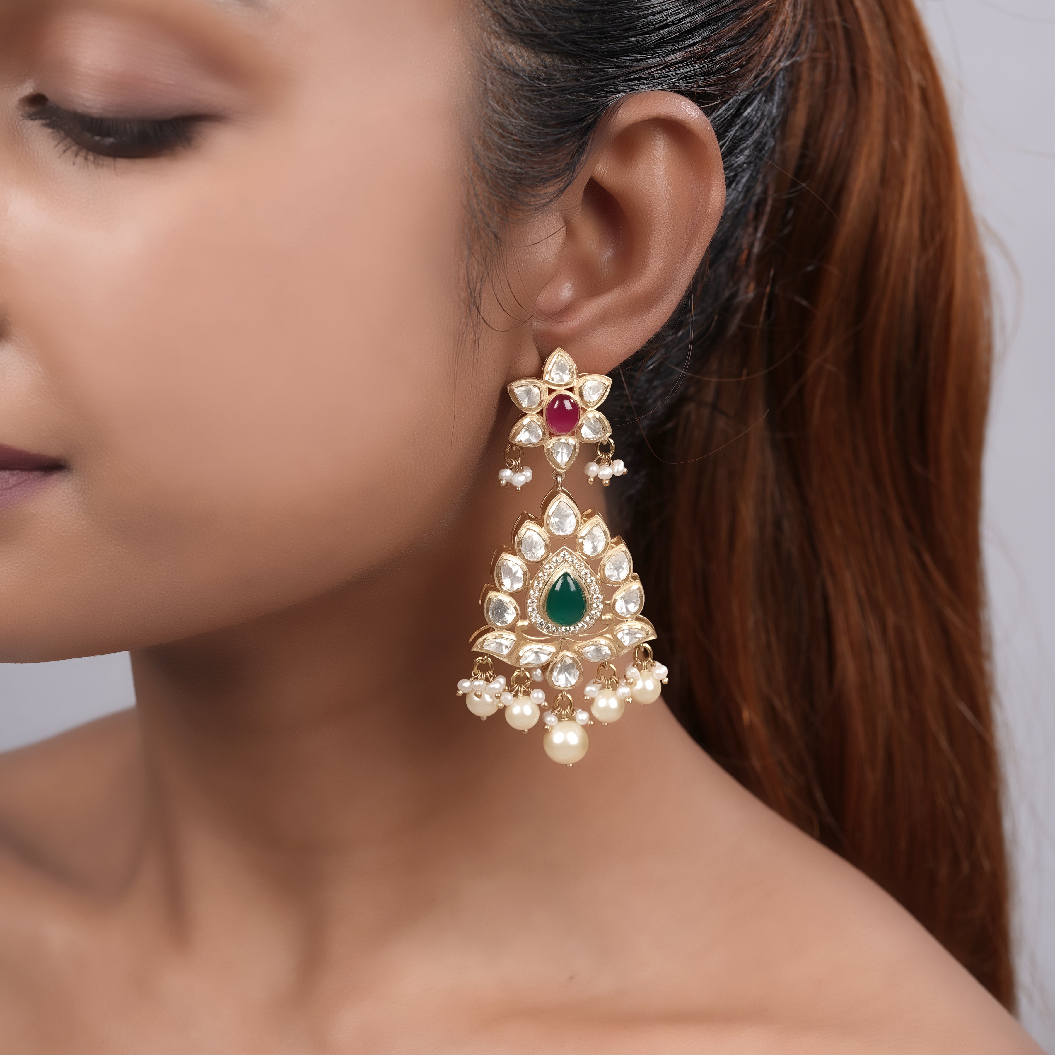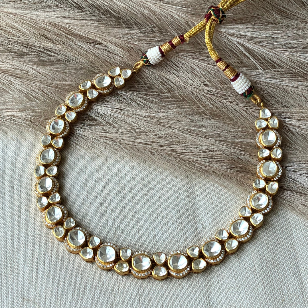 Discover Kreshya's exclusive Indian jewelry collection, crafted to embody regal elegance. Our Silver Polki collection showcases exquisite, diamond-cut pieces on a 925 silver foundation, radiating sophistication and charm. Each design exudes rustic allure, adorned with vibrant colored stones that elevate your ensemble with opulence. Explore our versatile range of multifaceted designs, perfect for pairing with any attire and making a statement wherever you go.