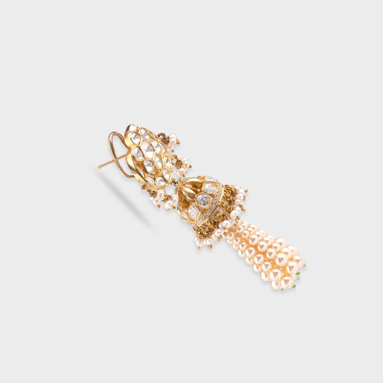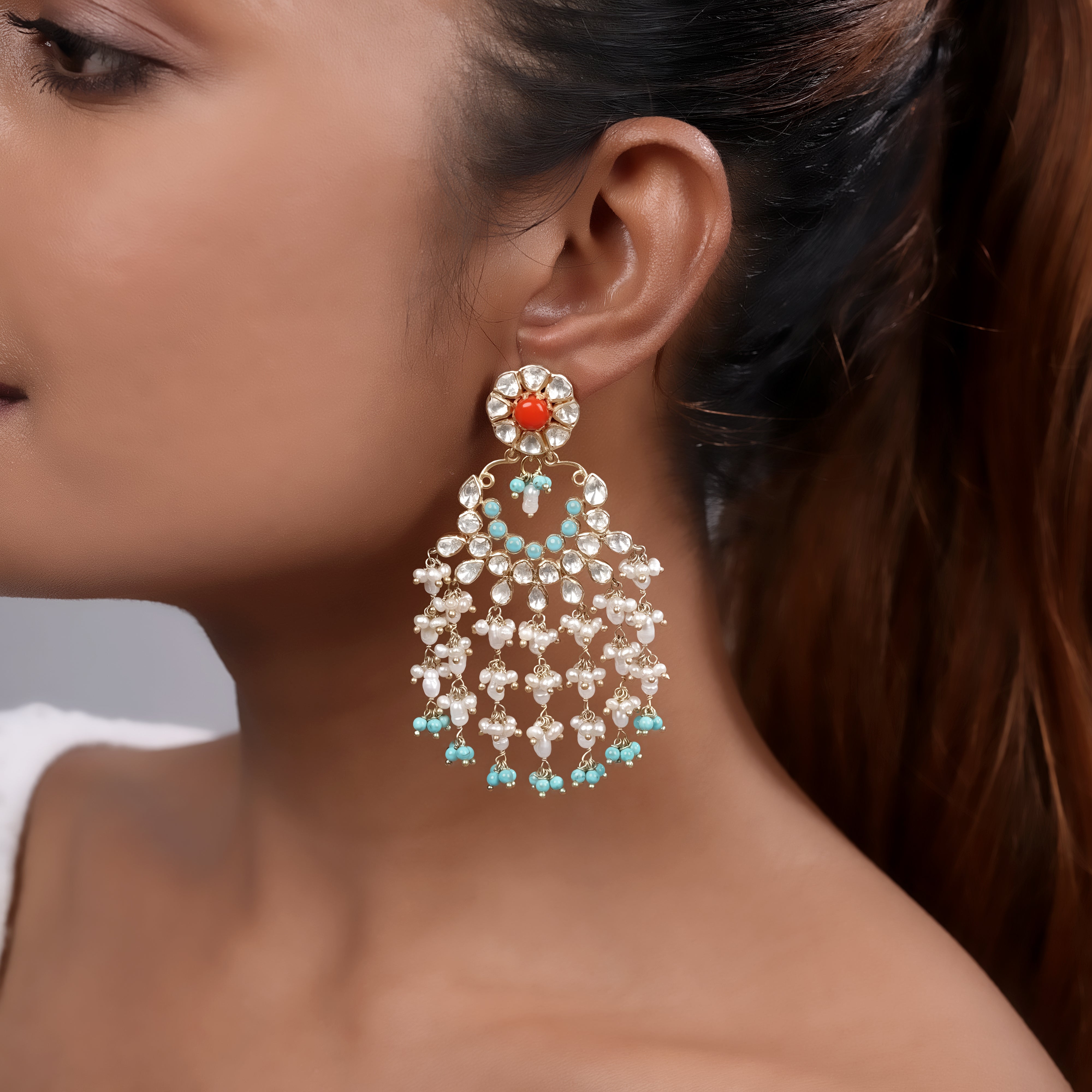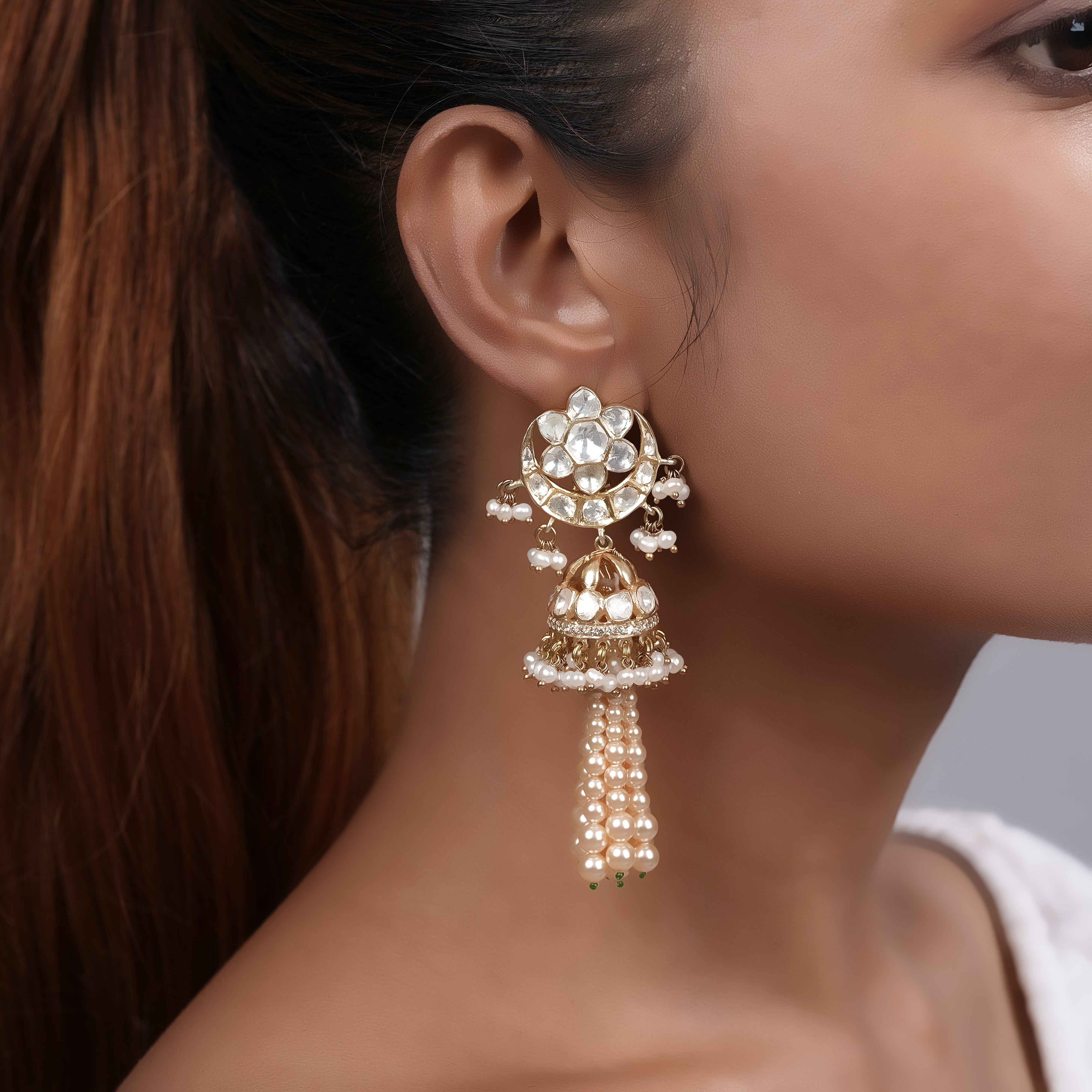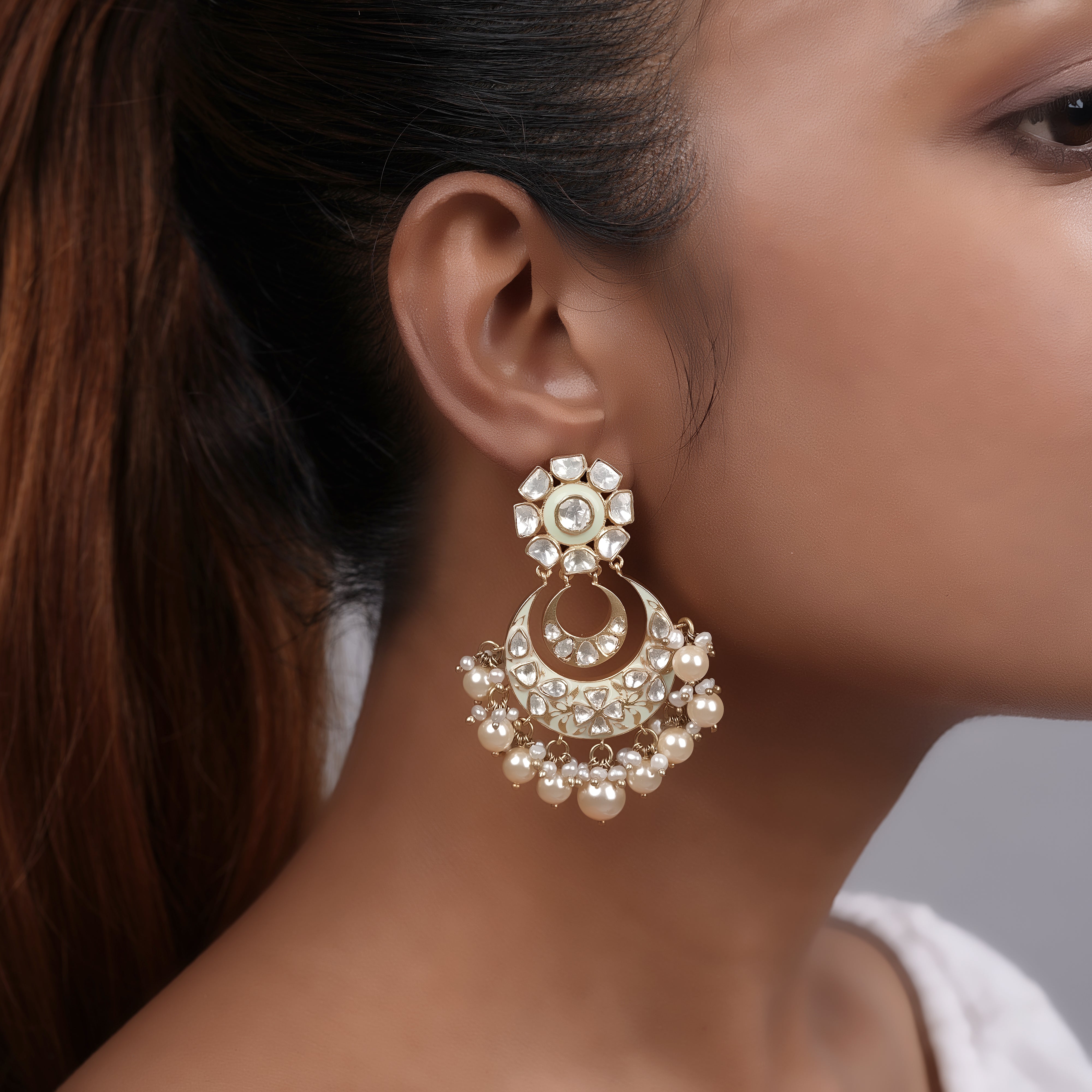 Discover Kreshya's exclusive Indian jewelry collection, crafted to embody regal elegance. Our Silver Polki collection showcases exquisite, diamond-cut pieces on a 925 silver foundation, radiating sophistication and charm. Each design exudes rustic allure, adorned with vibrant colored stones that elevate your ensemble with opulence. Explore our versatile range of multifaceted designs, perfect for pairing with any attire and making a statement wherever you go.
