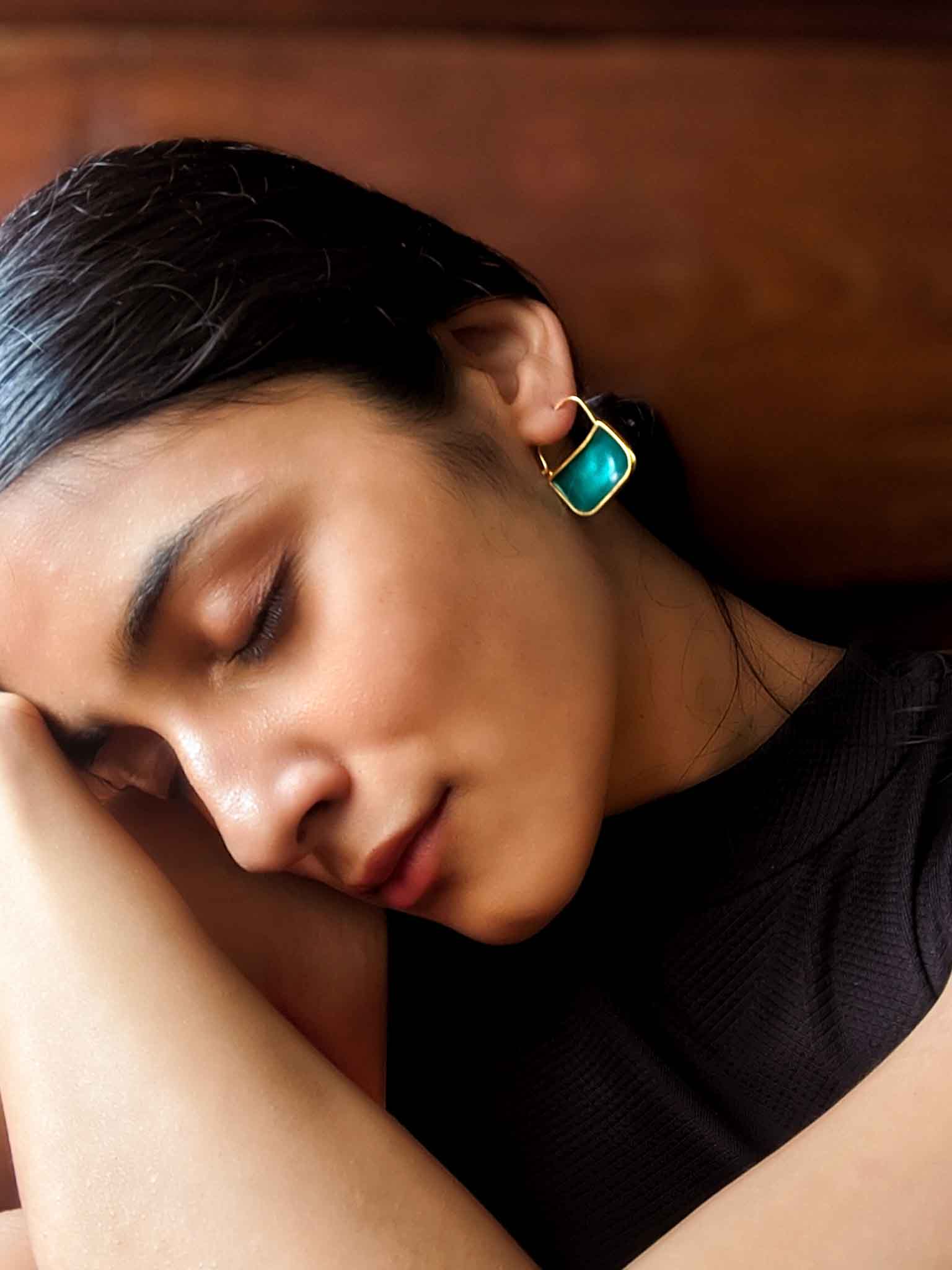 Stained Glass Inspired Quirky Earrings made with Alternate Metals & Kreshya's Exclusive Zero Emission Gold Coating Focussing on Sustainability. Tarnish Free and Durable Jewellery made for the Modern Woman
