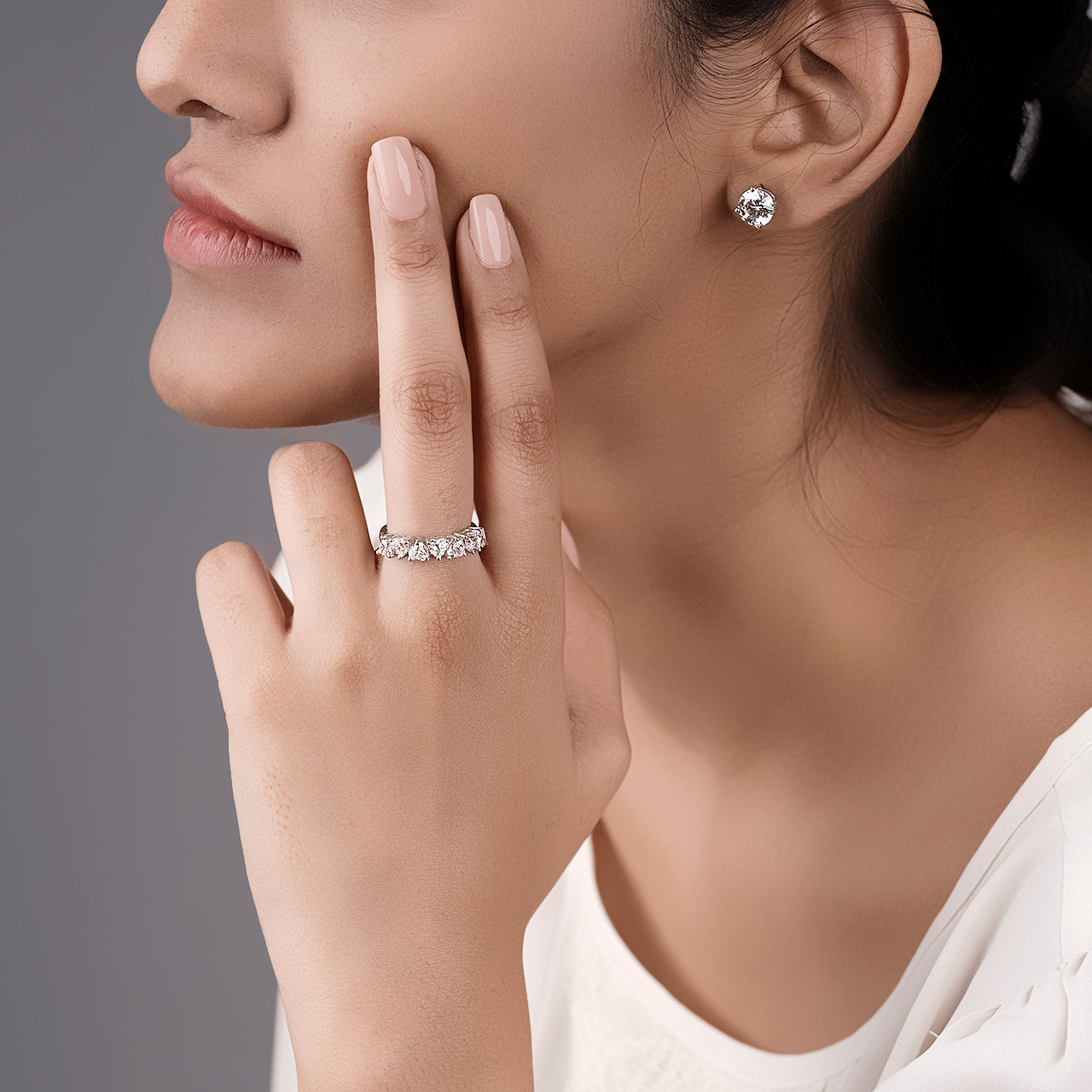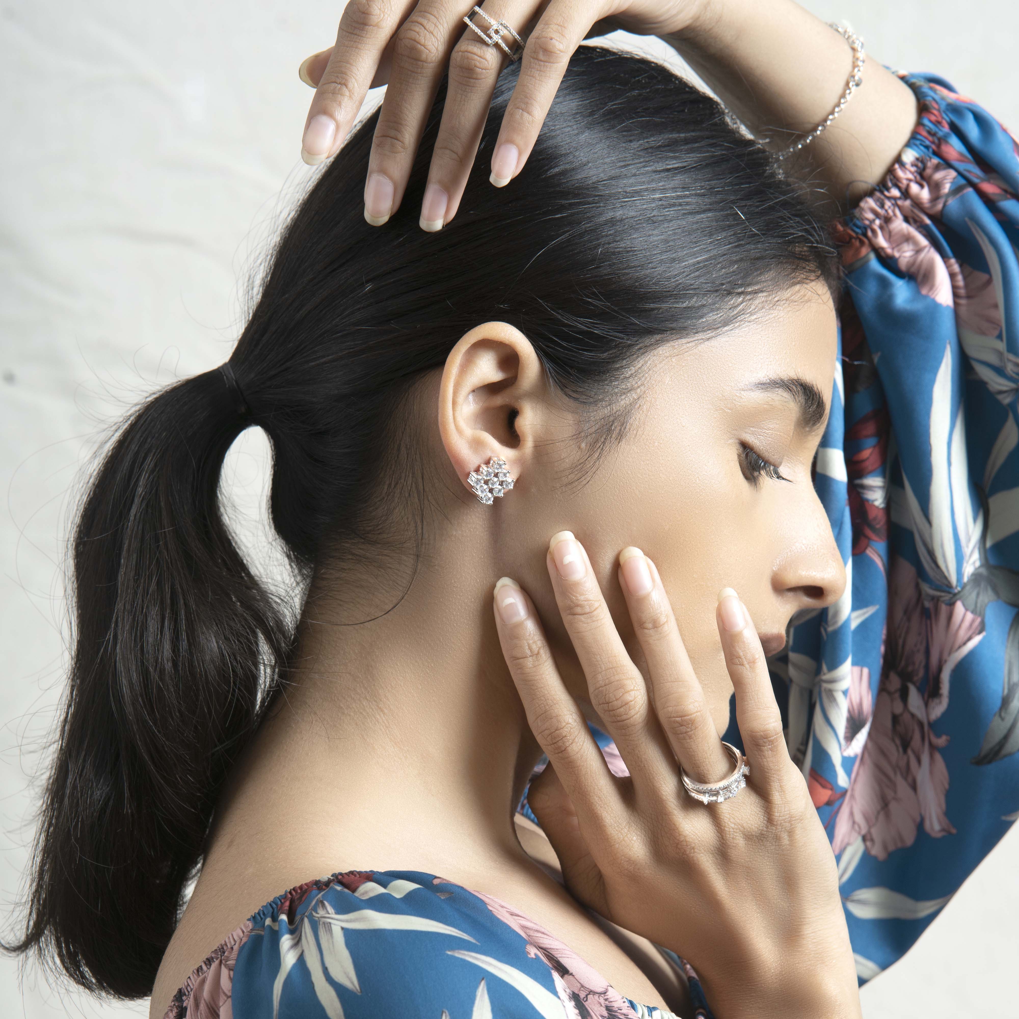 Kreshya's Silver Swarovski collection boasts oodles of intricate details that bespeak simplicity and sophistication. This bedazzling collection is fashioned in recycled 930 silver and Swarovski stones. These absolute stunners are great to be worn everyday for a glam everyday look that supports sustainability.